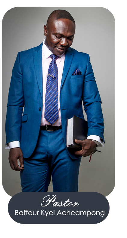 Pastor Baffour Kyei-Acheampong received his divine call in 2006, shortly after his conversion at Lighthouse Chapel in London under the ministry of Bishop Richard Aryee, who prophetically declared that he would one day preach the Gospel. Soon after, while praying in Abingdon, Oxfordshire, he experienced a powerful encounter with the Lord Jesus Christ, was baptized in the Holy Spirit with the evidence of speaking in tongues, and received his call to ministry.
